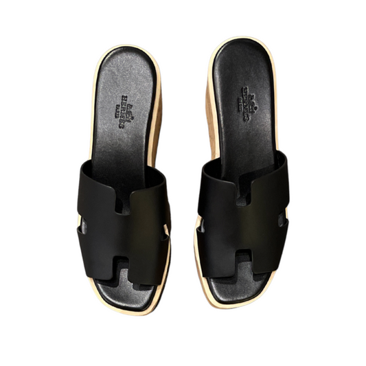 Hermès Eze 30 Platform Sandals in Calfskin Leather and Light Cork