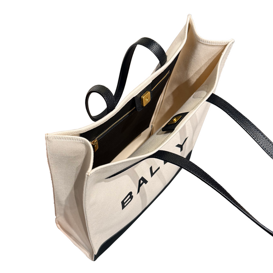 Bally Keep On Bar Tote Bag in Canvas with Grained Leather Trim