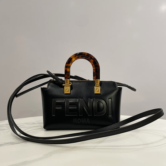 Fendi Mini By The Way Handbag in Calfskin Vitello Leather with Tortoiseshell Resin Handle