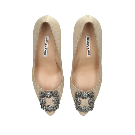 Manolo Blahnik Hangisi Champagne Glitter Jewel Buckle 50mm Low Heel Pumps