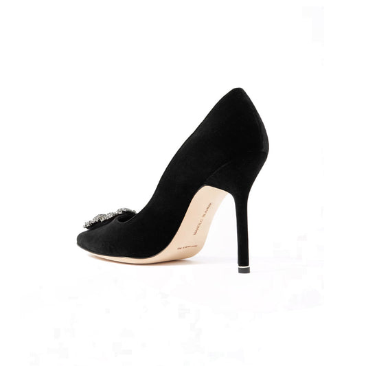 Manolo Blahnik Hangisi Black Satin Jewel Buckle 90mm High Heel Pumps