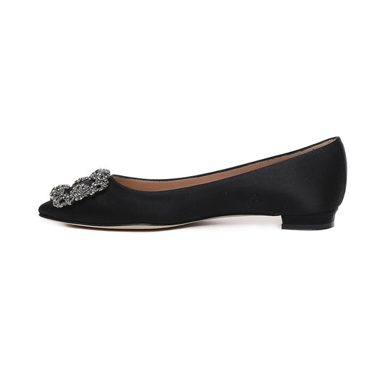 Manolo Blahnik Hangisiflat White Satin Jewel Buckle Flats