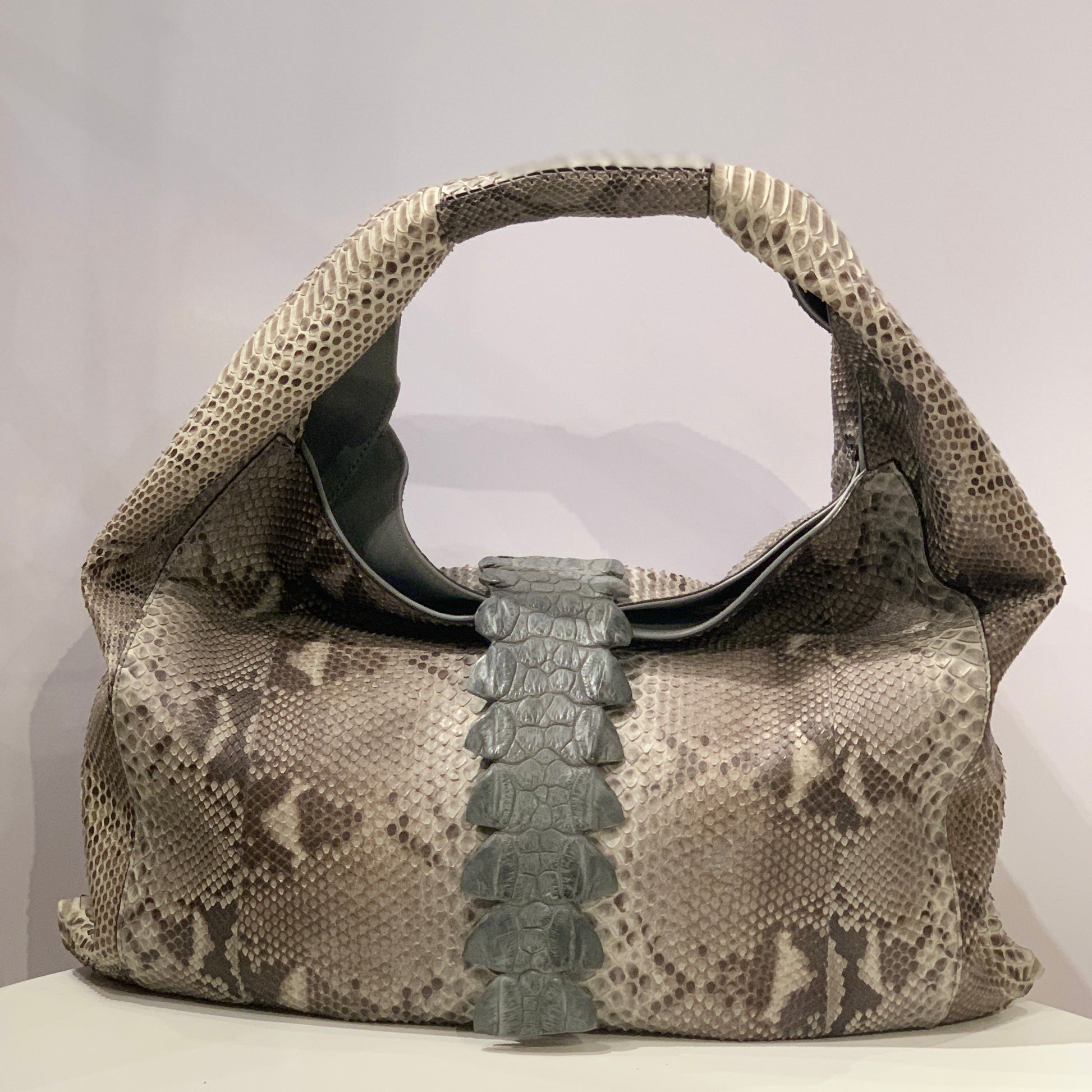 Biagini Legenda Top-Handle Shoulder Bag in Python and Crocodile