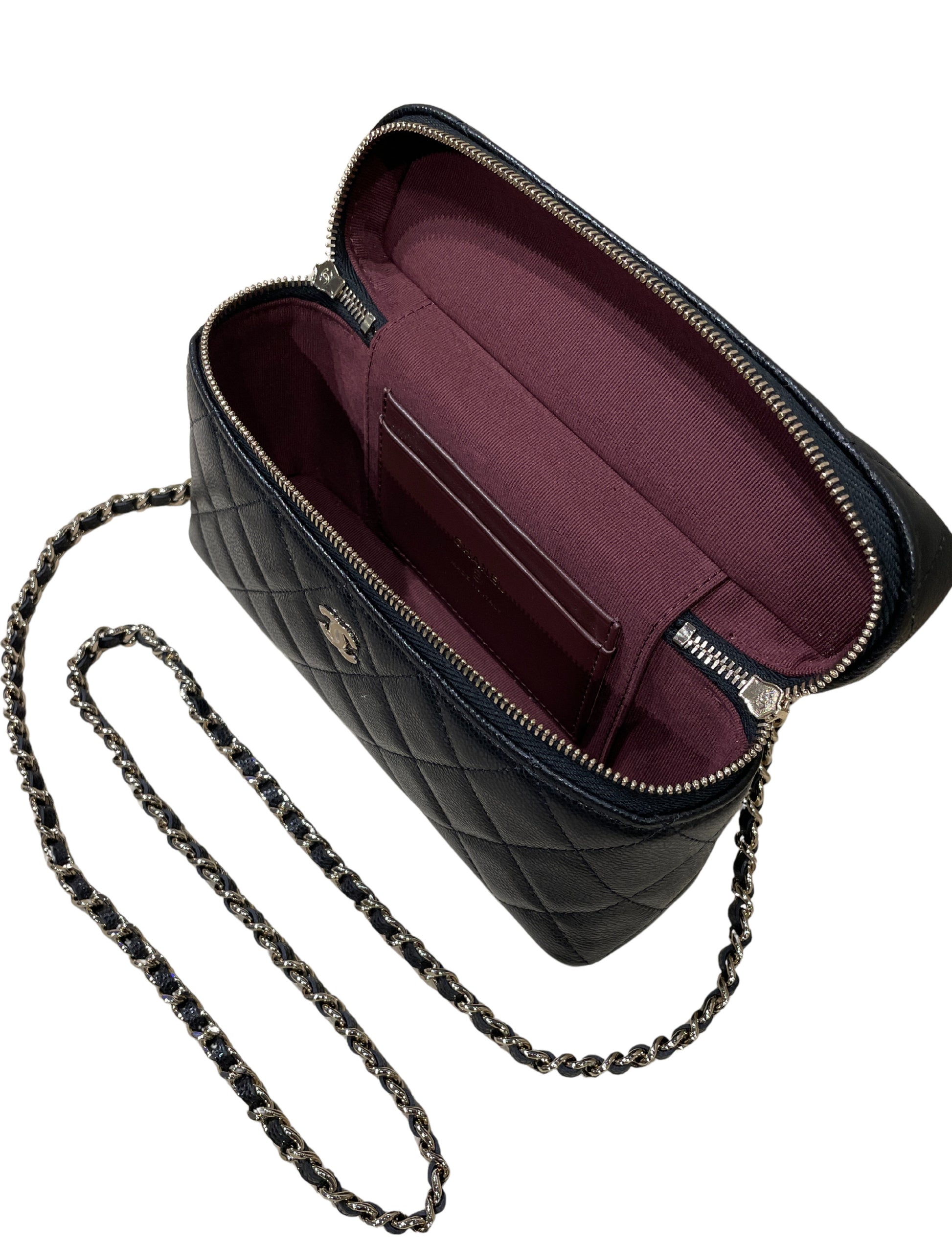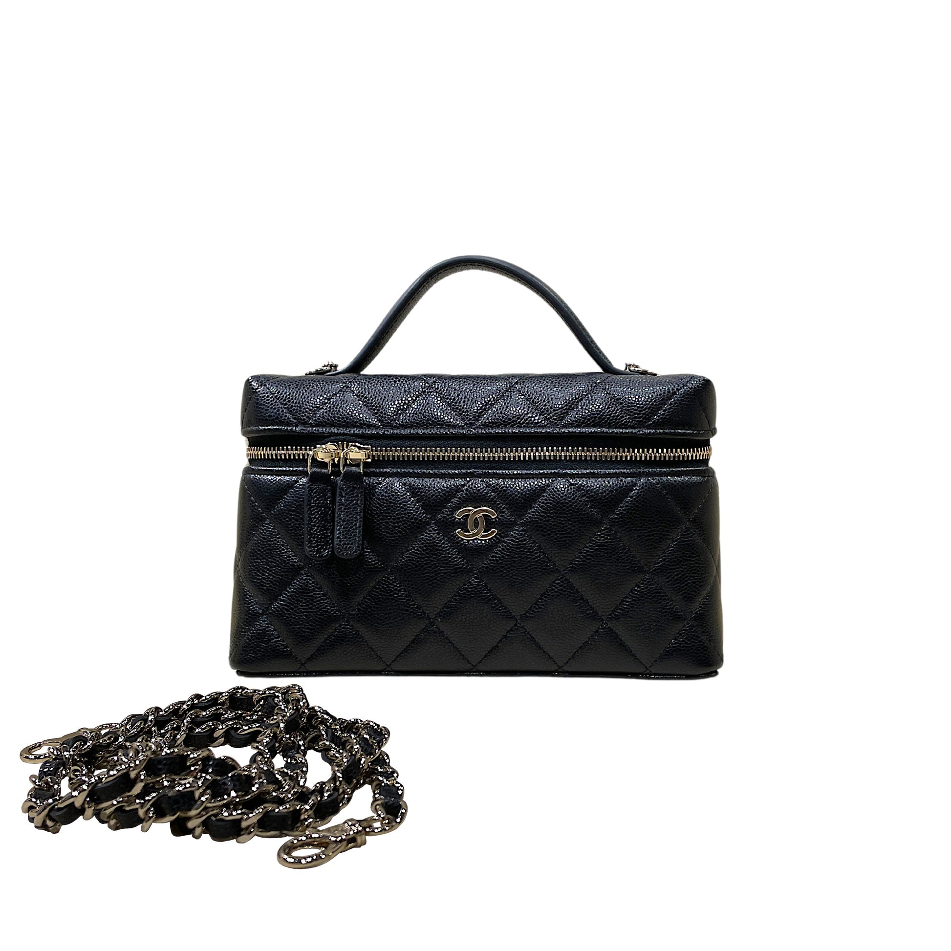Chanel Vanity Case in Caviar Grained Calfskin & Gold-Tone Metal with Chain