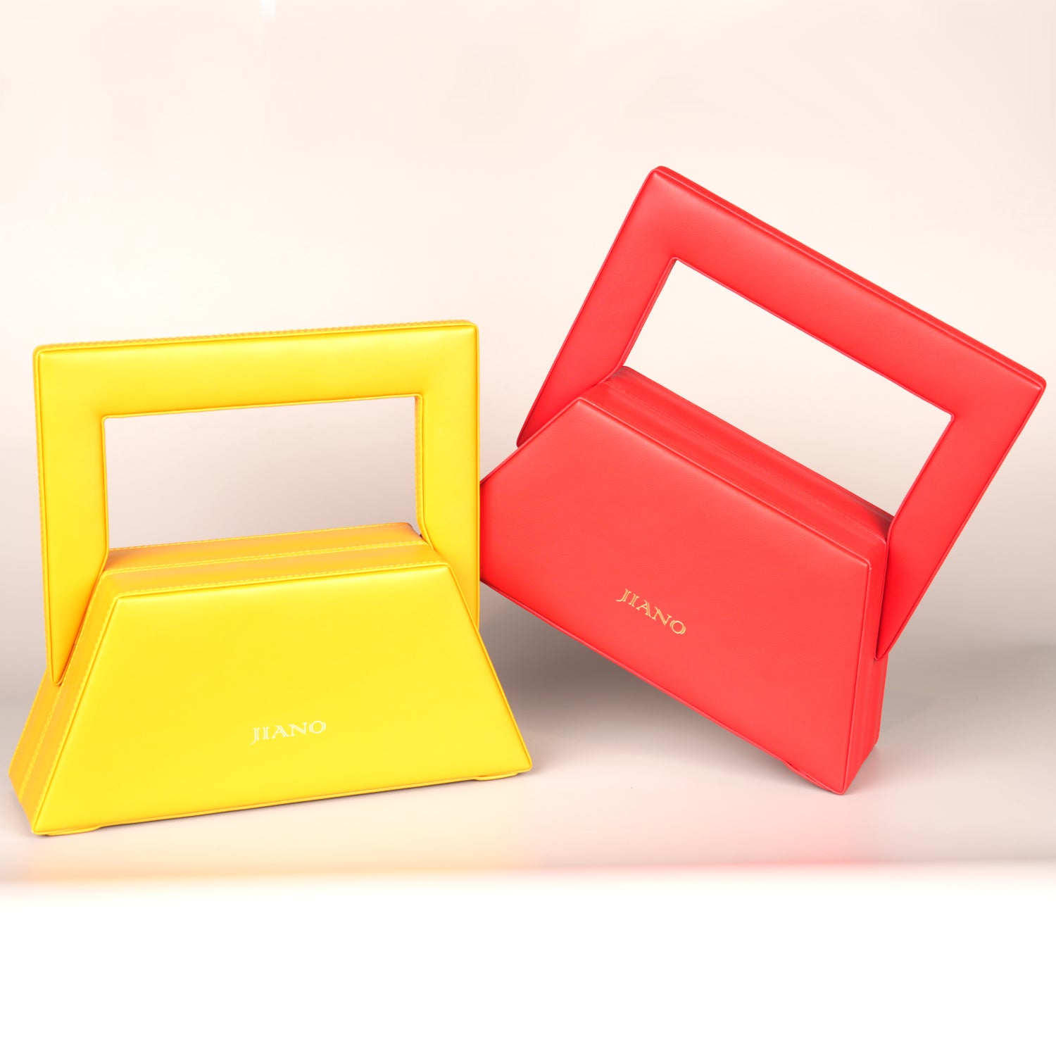 A balance of whimsy and elegance, Jiano Trapezoid bags are for those who dare to stand out. Handmade and designed to emphasize women's individuality, each bag is unique with the colors and shapes bringing whimsy while still being sophisticatedly simple.